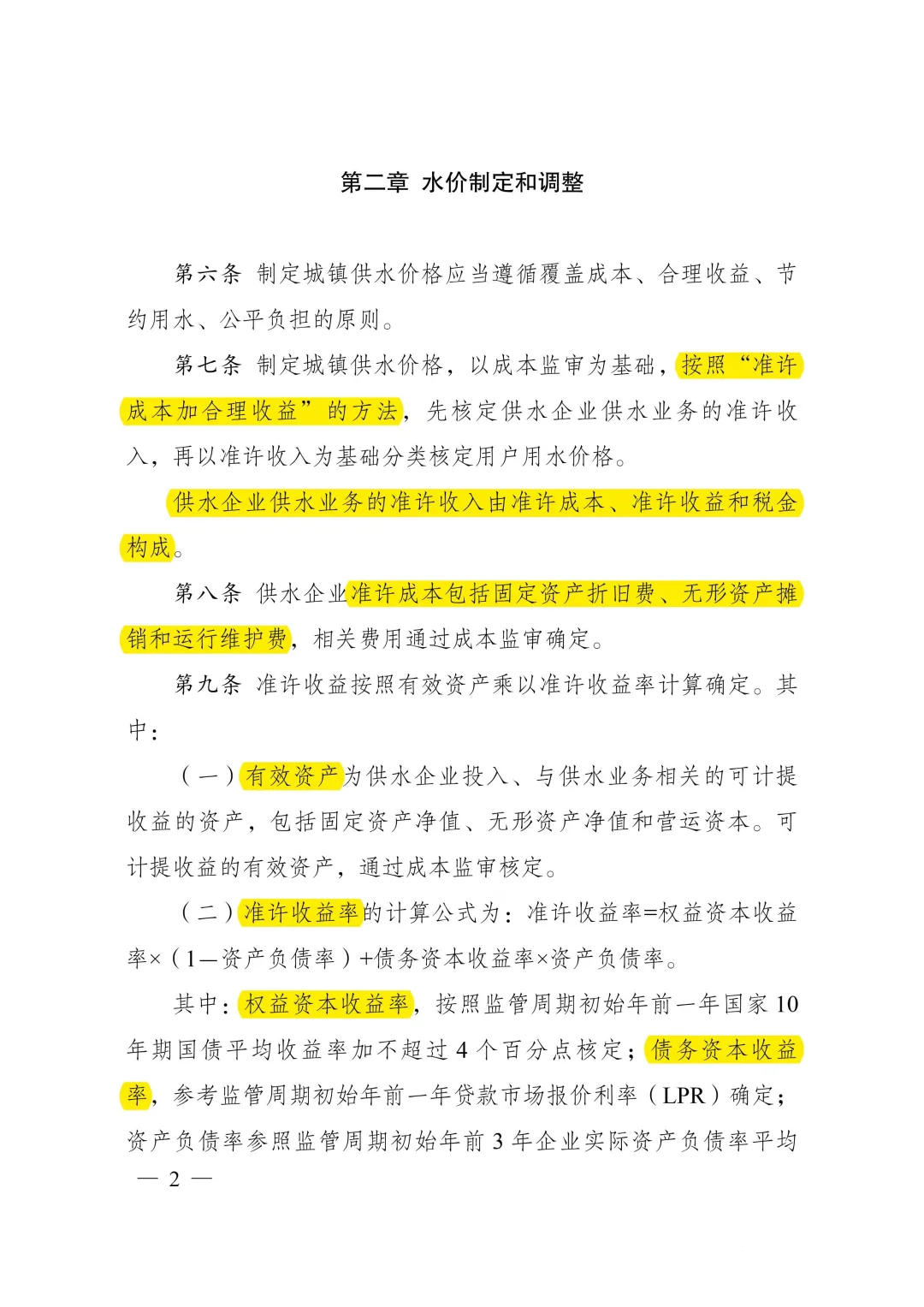 三是建立了參考市場利率合理確定供水收益率的機制。明確供水企業準許收益率根據權益資本收益率、債務資本收益率確定,權益資本收益率按照10年期國債收益率加不超過4個百分點核定,債務資本收益率按照貸款市場報價利率確定,有利于吸引社會資本進入,促進供水行業健康持續發展。