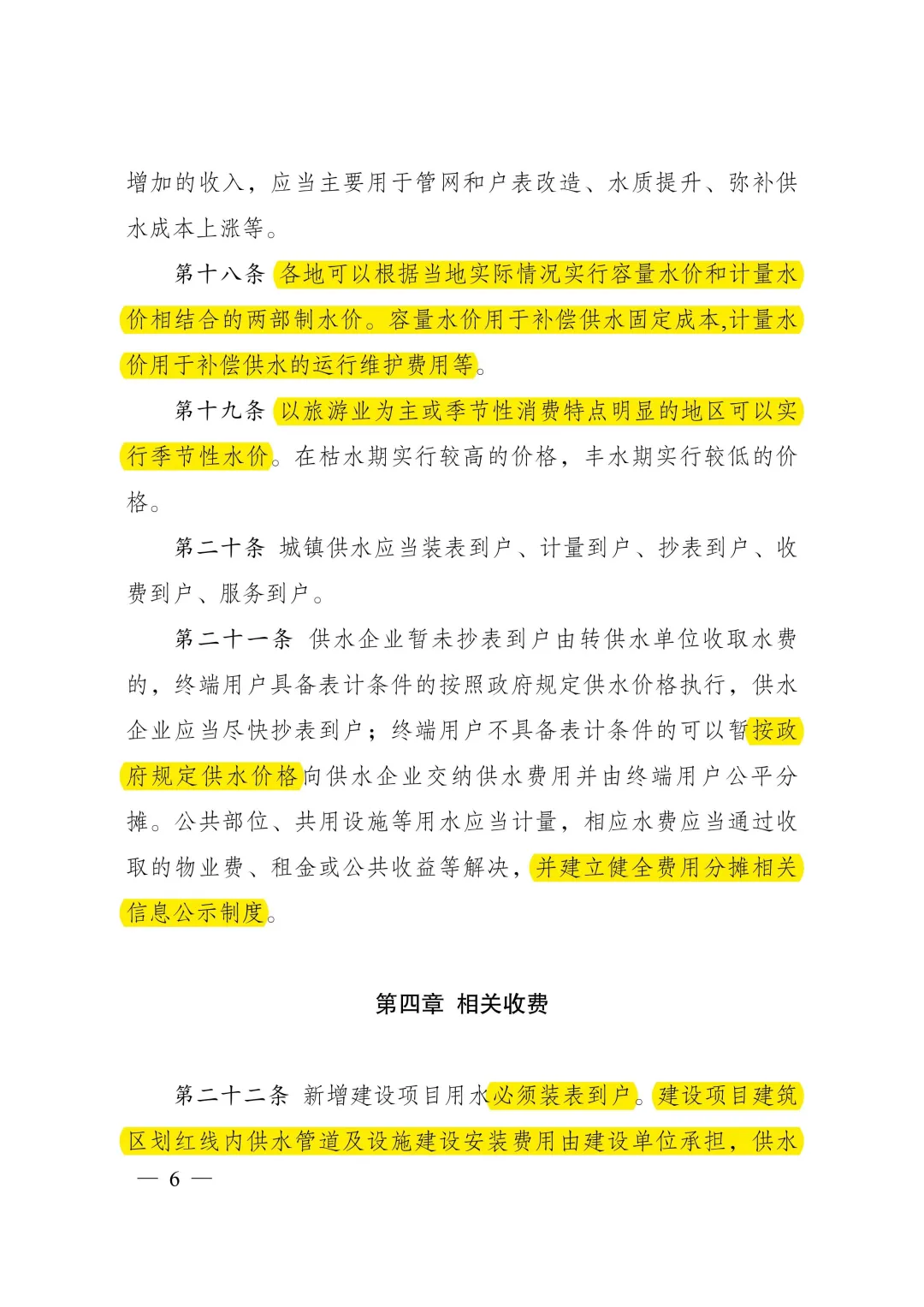 答:兩個《辦法》的修訂出臺,有助于進一步規范城鎮供水價格管理,保障供水、用水雙方合法權益,促進城鎮供水事業健康發展,節約和保護水資源。考慮到我國地域廣闊,不同地區水資源稟賦條件、經濟發展水平、社會承受能力等情況差異較大,兩個《辦法》對完善城鎮供水價格機制作出了框架性要求,一些具體參數設定和指標考核等需要各地區結合當地實際進一步細化明確,各地應當制定出臺具體辦法或實施細則。
